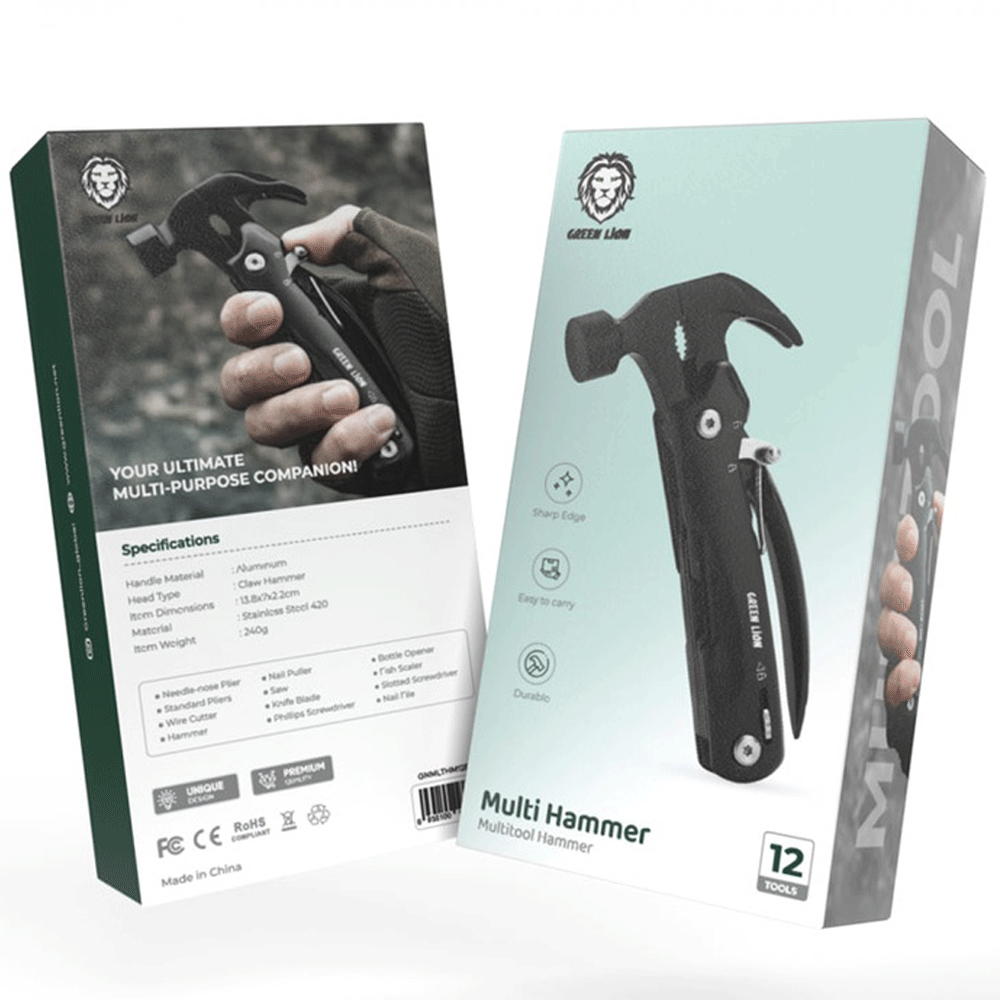 چکش گرین لاین با 12 عملکرد متنوع، شامل چکش، سیم چین، اره، میخ کش، چاقو، پیچ گوشتی یک سو، پیچ گوشتی چهارسو، انبردست، سوهان ناخن، پولک گیر ماهی، در باز کن و دم باریک، مجموعه کاملی از ابزارهای کاربردی را در یک وسیله جمع کرده است. این تنوع، محصول را برای استفاده در شرایط مختلف مثل کمپینگ، کارهای فنی، تعمیرات خودرو و حتی کارهای روزمره خانگی بسیار مناسب میسازد.