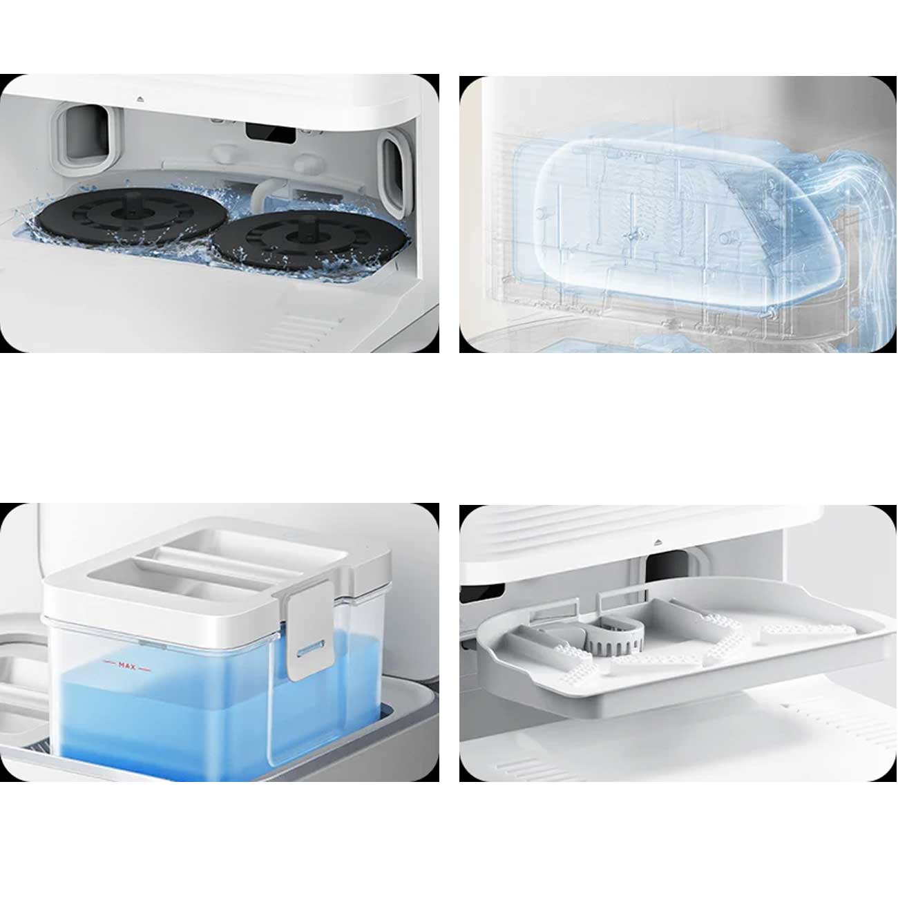 خشک شدن خودکار پد پاککن: پس از اتمام فرآیند تمیزکاری، پد پاککن به طور خودکار با هوای داغ در عرض 3 ساعت خشک میشود. این فرآیند از ایجاد کپک و بو جلوگیری میکند و نیاز به خشک کردن در آفتاب یا روشهای دیگر را برطرف میکند.