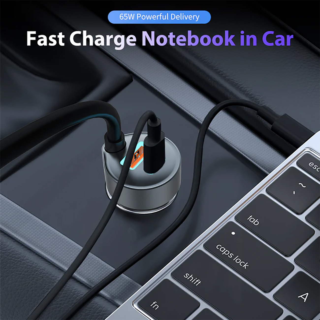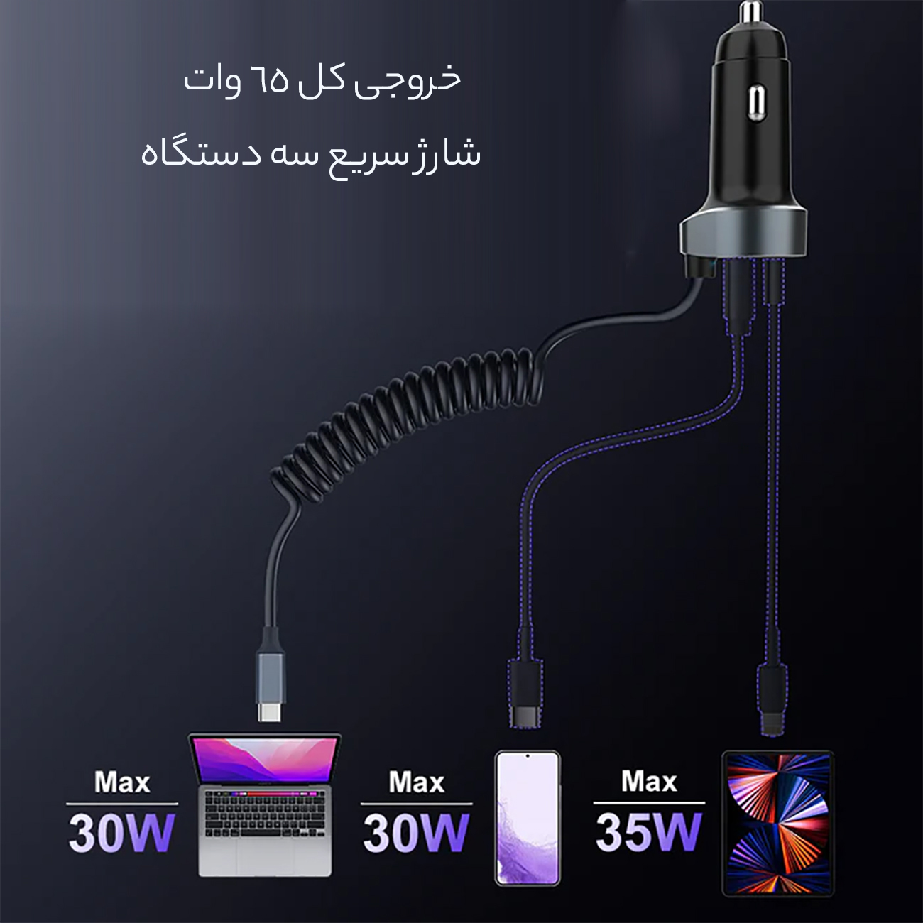 شارژر فندکی 65 وات دو پورت پرووان با کابل تایپ سی PCG27
