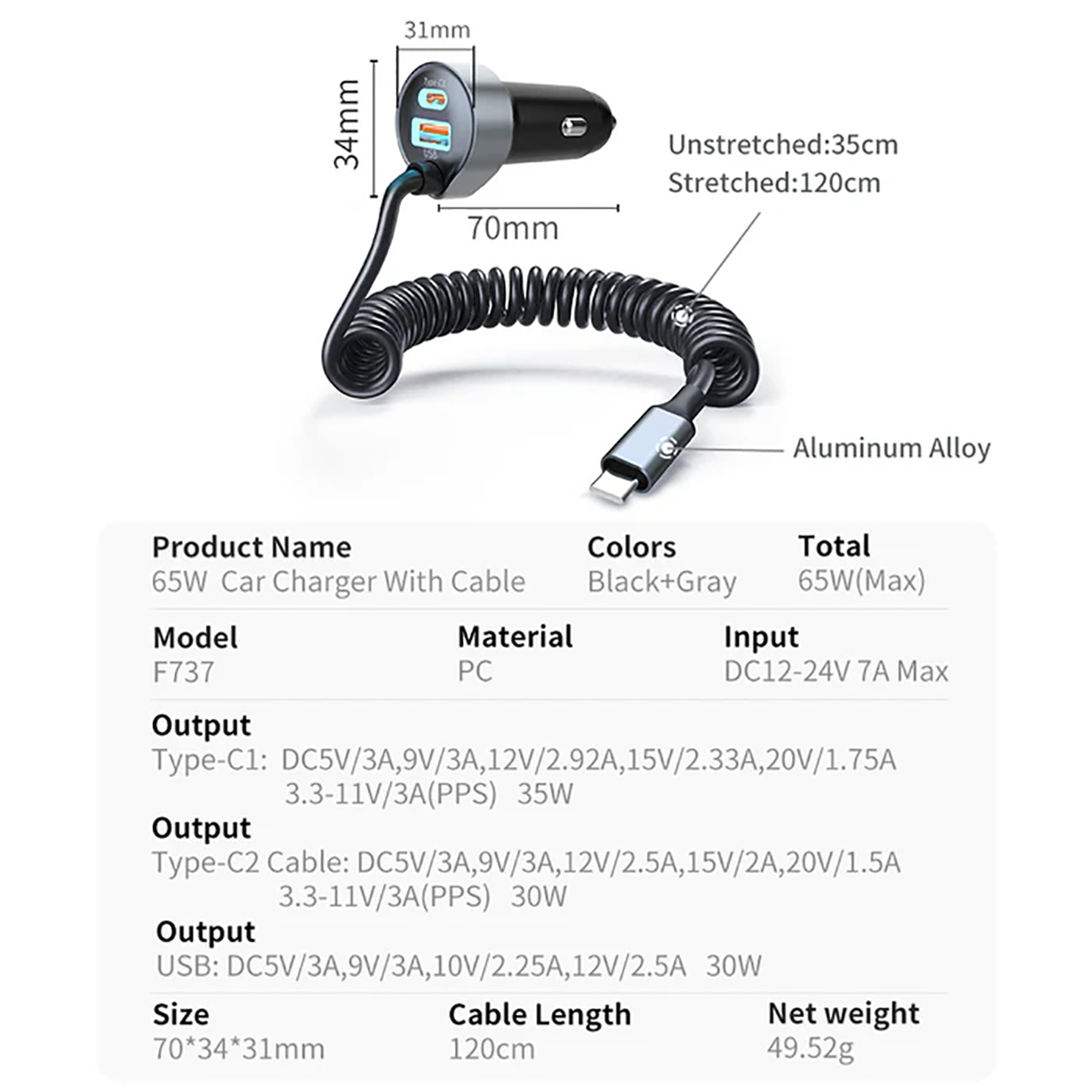 | مشخصات شارژر فندکی | |