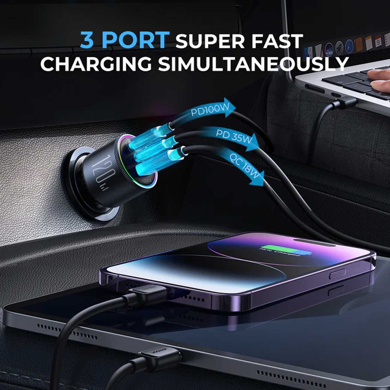 JOYROOM JR-CCN07 120W 3-Port (2PD+1QC3.0) Car Charger