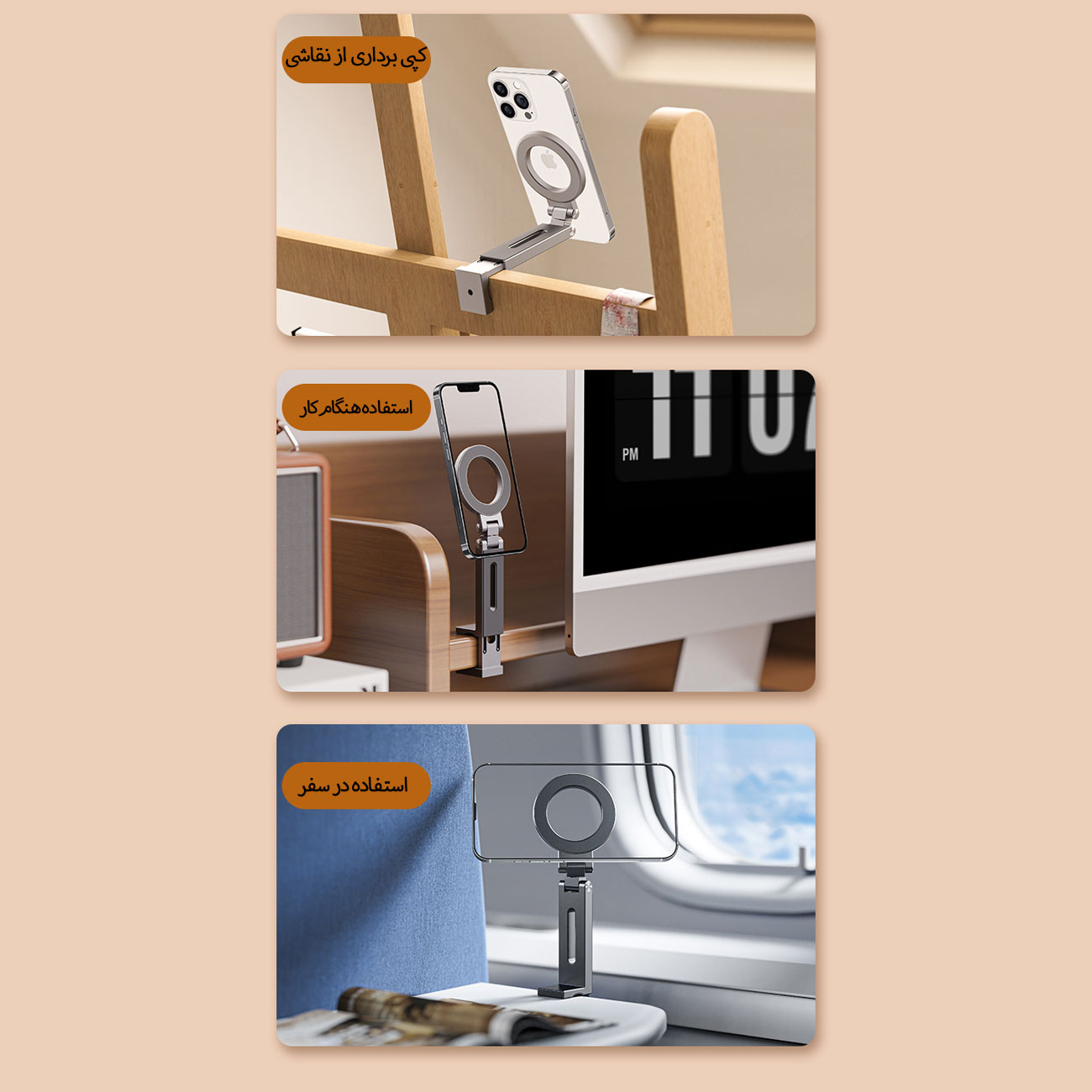 هولدر مگنتی گوشی موبایل و تبلت قابل اتصال به لبه میز، تخت و خودرو تاشو E01