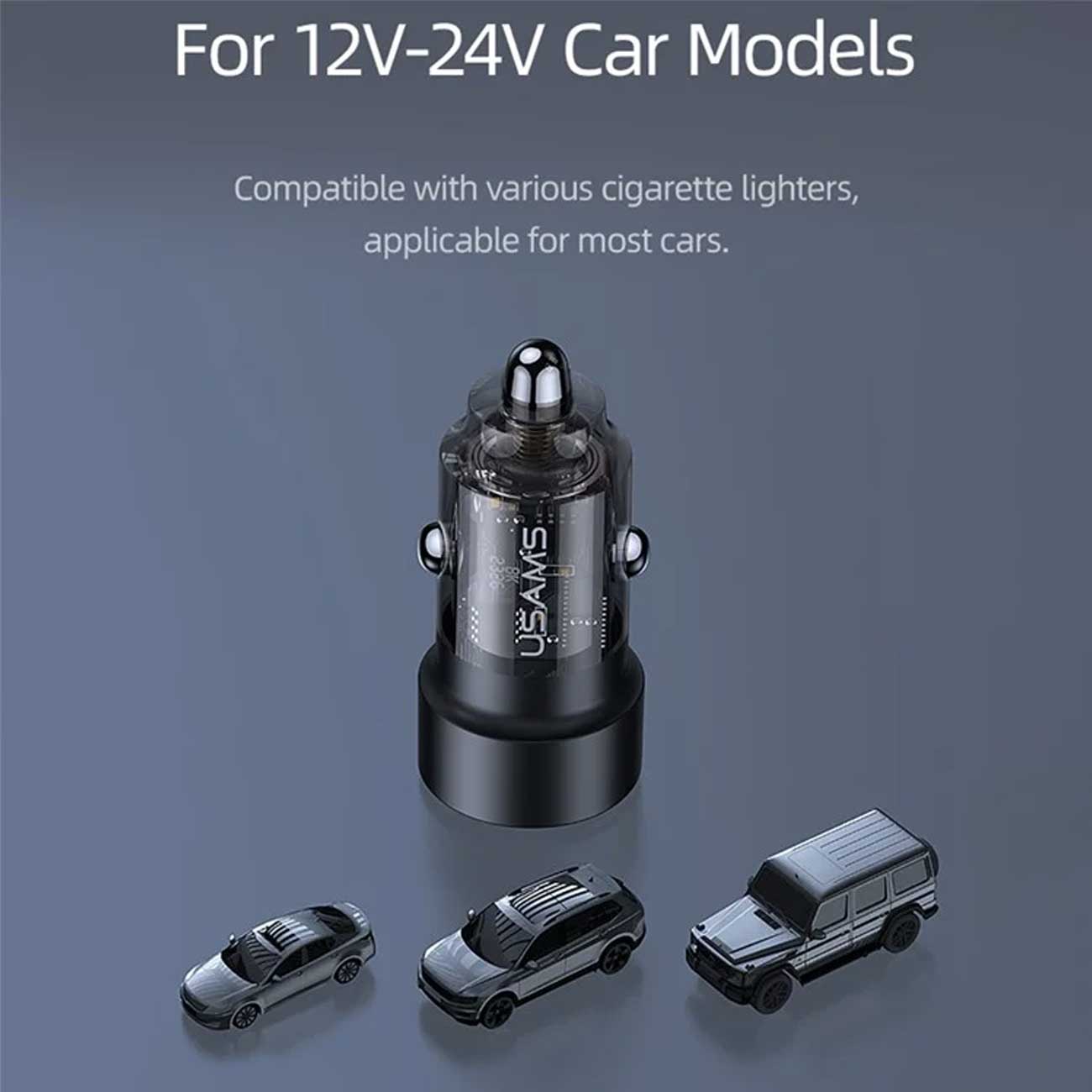 شارژر فندکی فست شارژ ماشین تایپ سی 60 وات طرح شفاف یوسامز US-CC208 C39